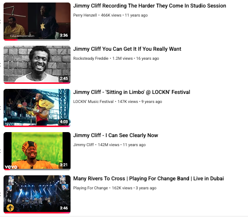 This playlist includes three songs written and performed by Jimmy Cliff. The fourth is his version of a Johnny Nash song. Finally, another Jimmy Cliff song.
