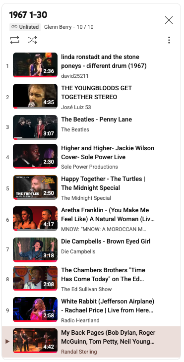 Starting with 1967, I will spread my music from that year over more than one post. By 1967, I was buying albums from time to time. Here are my favourite 10 from the top 30 for 1967.