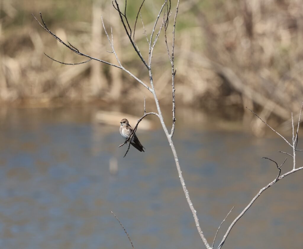 There are no signs of Chimney Swifts in London yet. We are just beginning to see the return of a few swallows. Besides the Tree Swallows foraging high above the wetland, there was one Northern Rough-winged Swallow perched over the water.