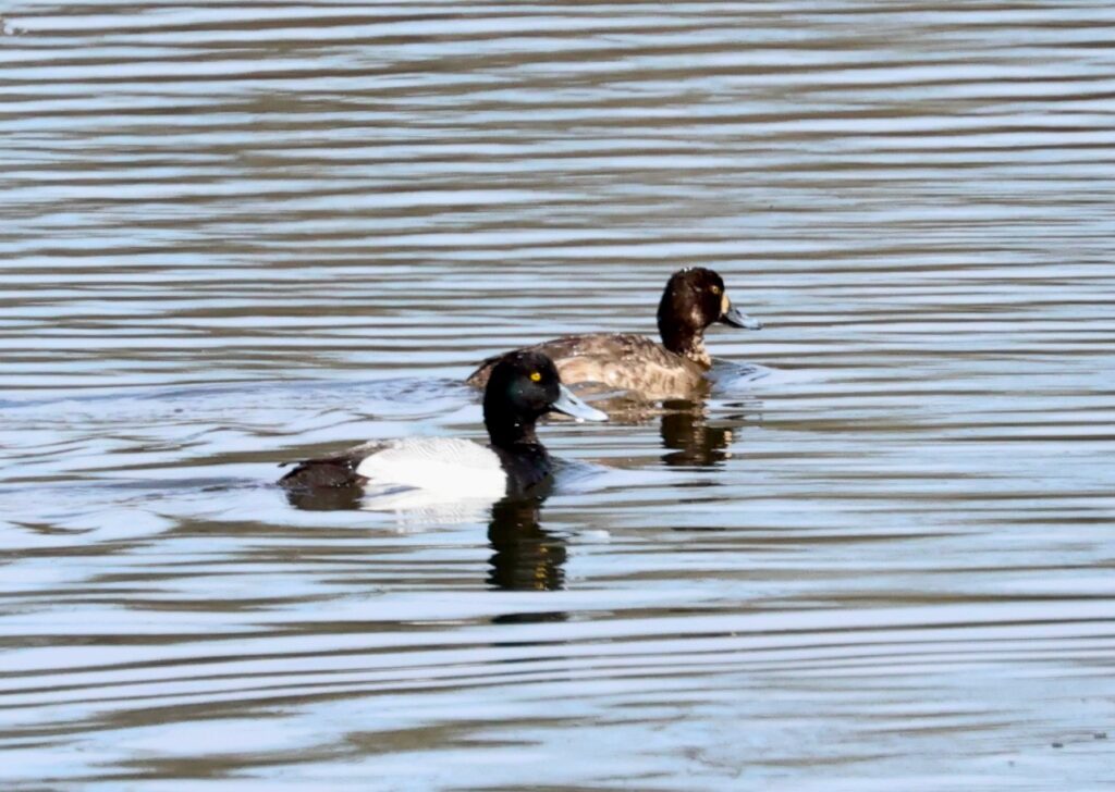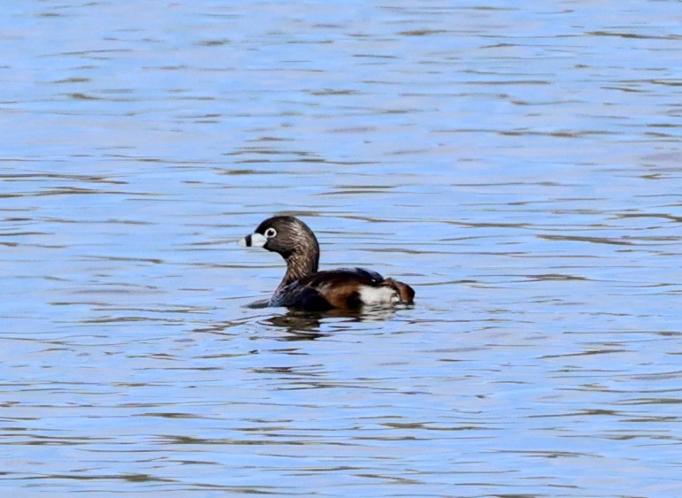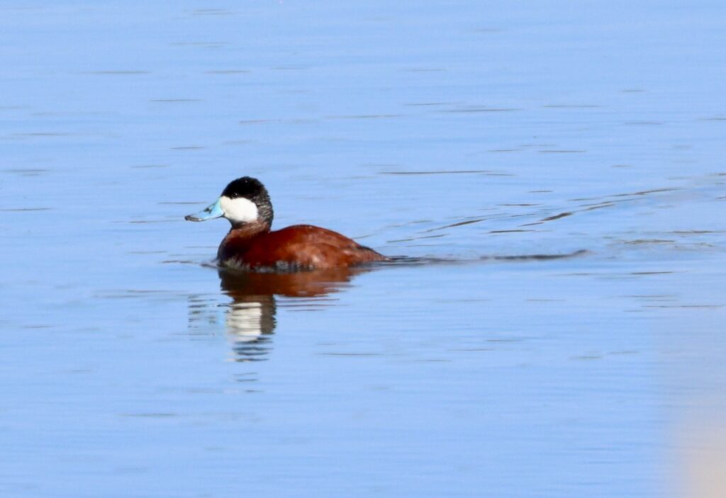 We counted 21 species here including these waterfowl: Canada Goose, Blue-winged Teal, Northern Shoveler, a female Canvasback, Lesser Scaup, Ring-necked Duck, Bufflehead, Ruddy Duck, Pied-billed Grebe, Horned Grebe, and an American Coot.