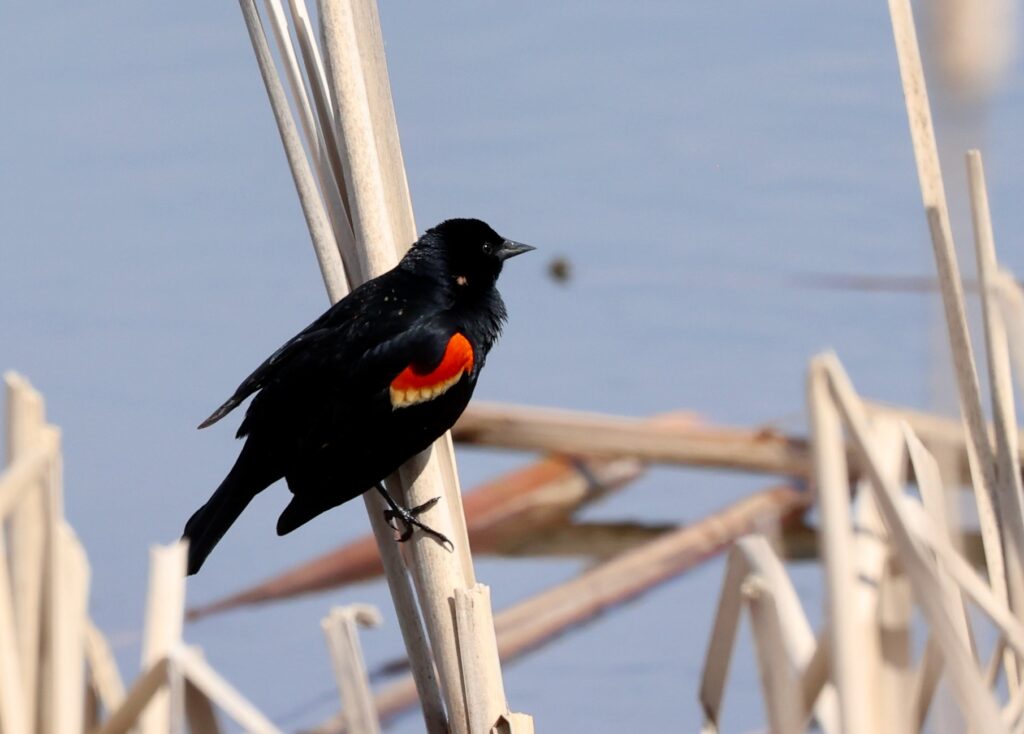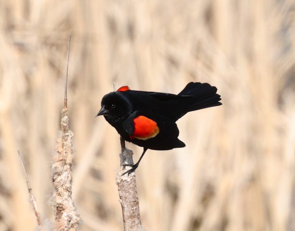 The songbirds were not as shy. The female Red-winged Blackbirds have arrived and the males are putting on a display.