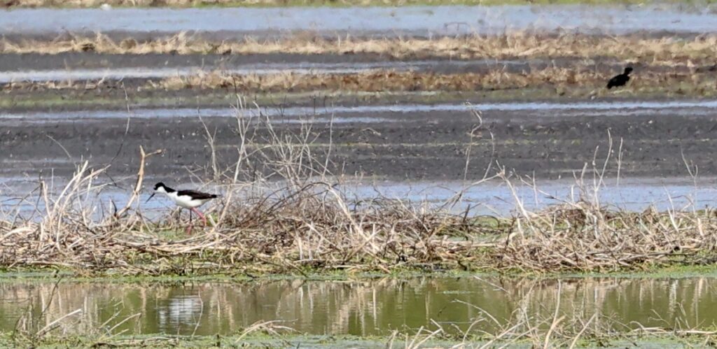 There was some excitement at the ponds because a Black-necked Stilt had been spotted. Last year, a pair of the stilts nested at the ponds and raised young, still a rare event in Ontario.