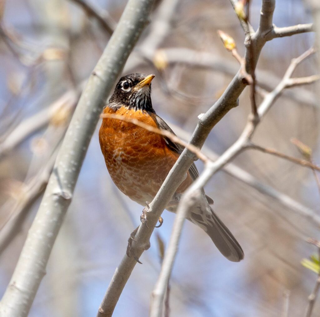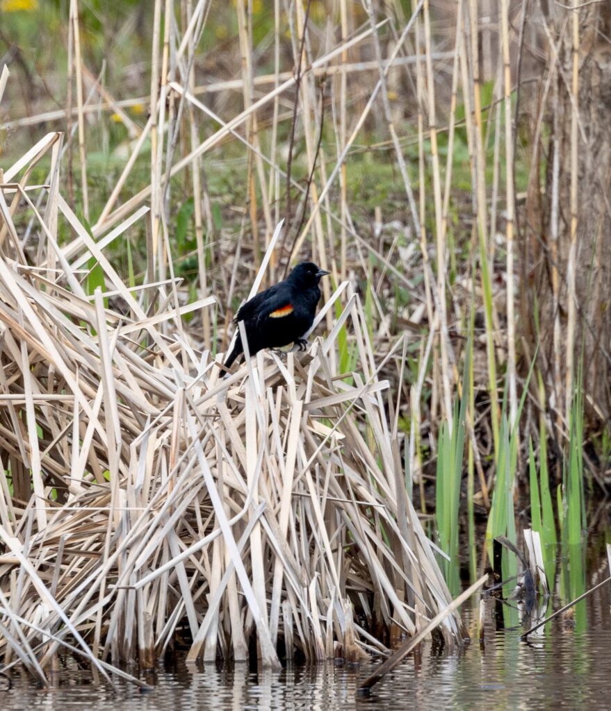 We were hoping to see some early spring arrivals and some migrant warblers, but the weather had been cool. We logged only 12 species: Turkey Vulture, Bald Eagle (both overhead), Red-bellied Woodpecker, Norther Flicker, Ruby-crowned Kinglet, Carolina Wren, American Robin, White-thoated Sparrow, Song Sparrow, Red-winged Blackbird, Common Grackle, Northern Cardinal.