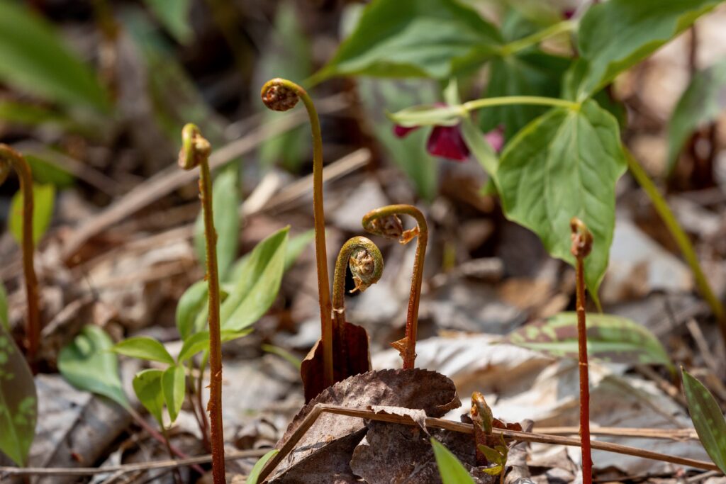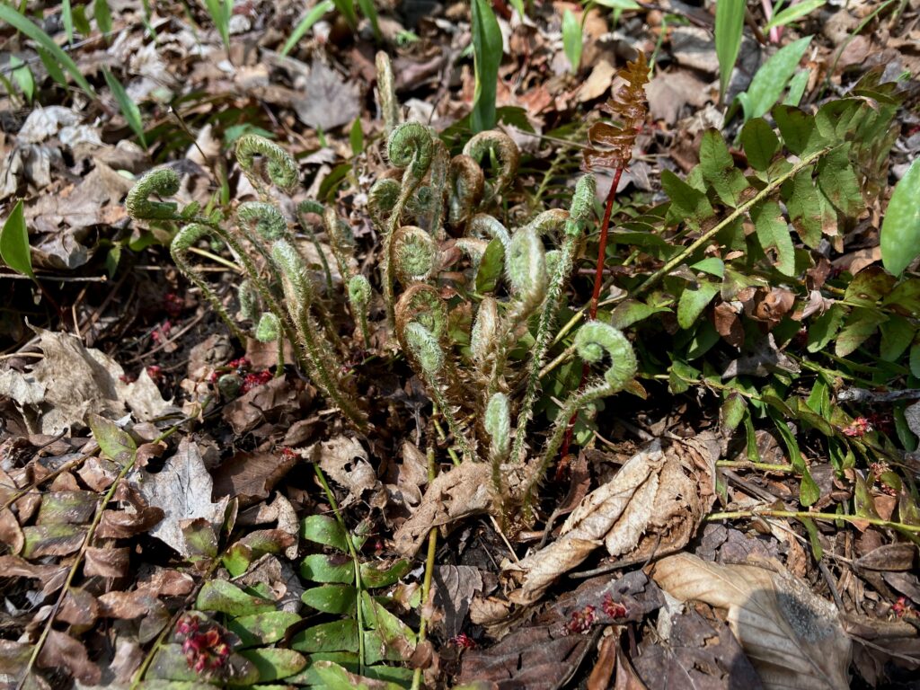 Christmas Ferns and other fiddleheads were just emerging from the ground.