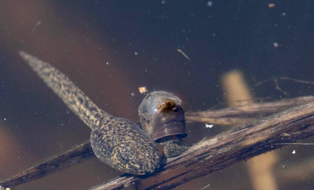 The large pond was alive with tadpoles and insect life.