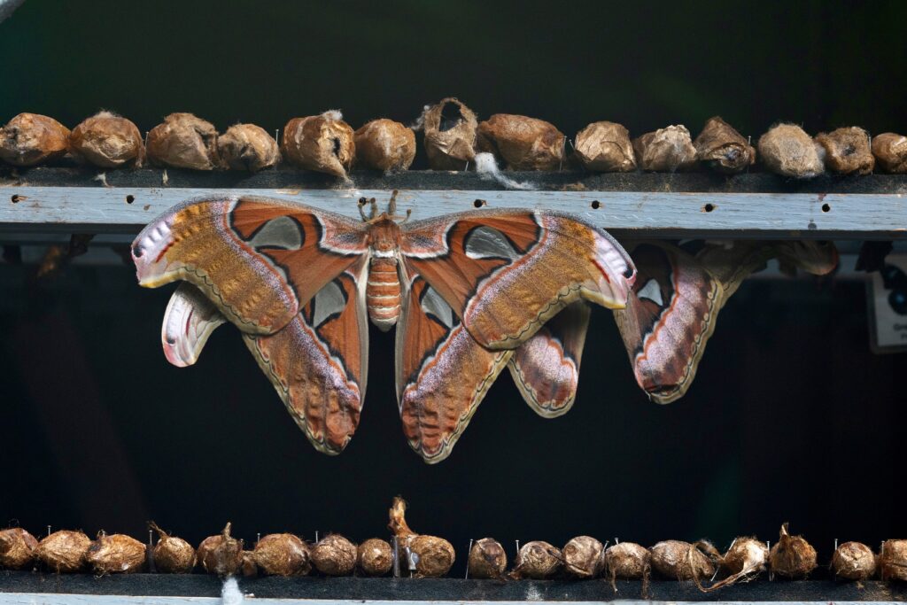 Butterflies and moths were emerging from the pupae in the Emergence Window. The conservatory receives pupae from butterfly farms in Costa Rica and the Philippines. According to the conservatory’s blog, sustainable butterfly farming started decades ago as a way to conserve tropical rainforest habitat. Local families earn a living and have a vested interest in protecting tropical environments. The butterflies and other living organisms benefit from habitat protection.