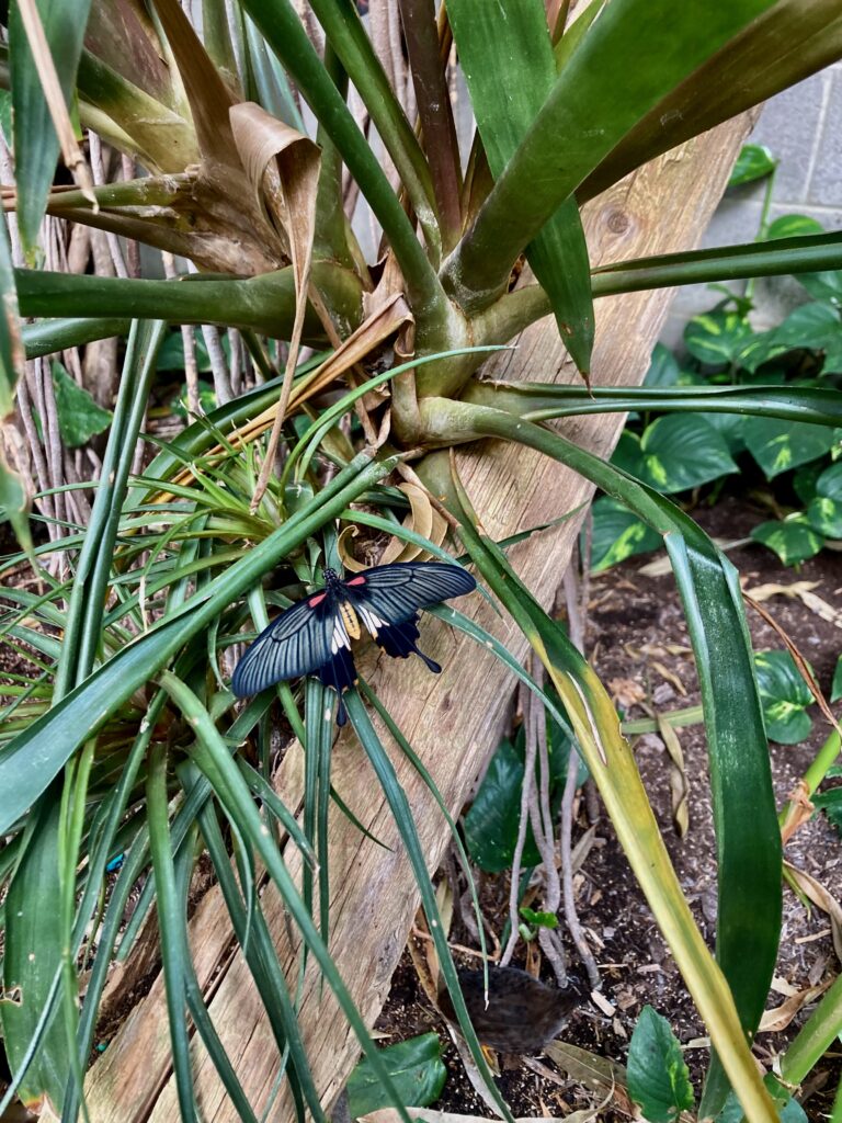 It includes a 10,800 square foot indoor tropical garden that hosts thousands of free-flying butterflies and a variety of tropical plants, birds, and animals. We welcomed the warmth of the humid tropical landscape, blossoms, and water features.
