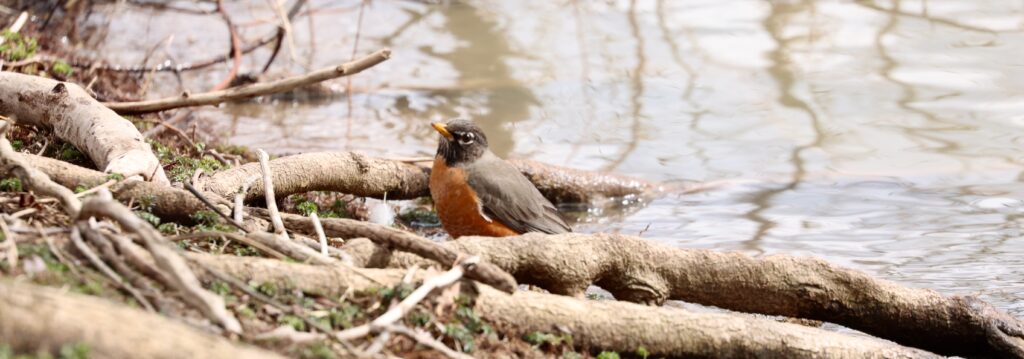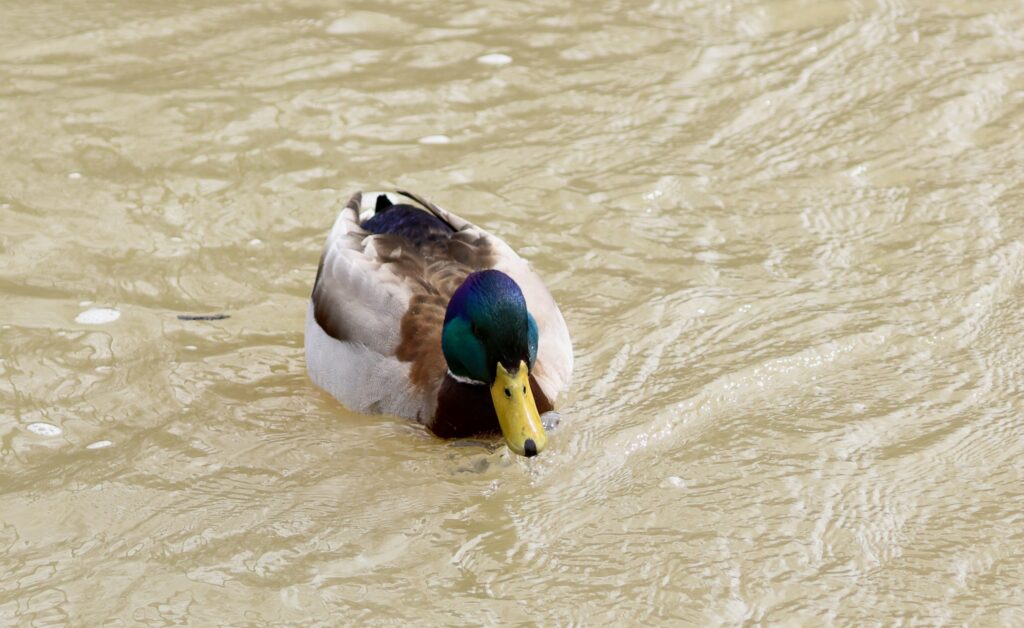 The river was high and running fast. Not too many ducks or geese ventured into the water.
