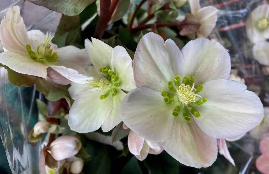 We can still enjoy our tulips and some of the spring blooms showing up this time of year. Hellebores are hardy perennials that bloom very early in the spring, even pushing up through the snow. These were outside a local flower shop.
