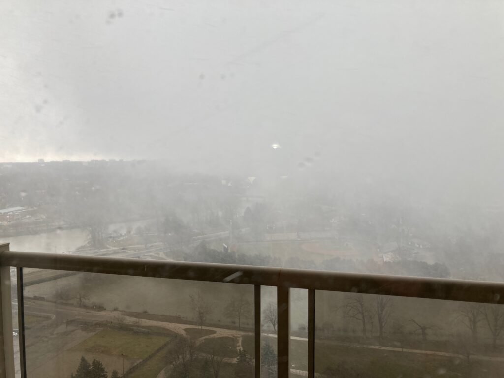 Yesterday, March 29th, around 2 pm we watched as a wall of snow raced toward our building from the west. Within no time we were in whiteout conditions that lasted for about an hour. By evening, the sky was clear and today promises to be sunny and above zero.