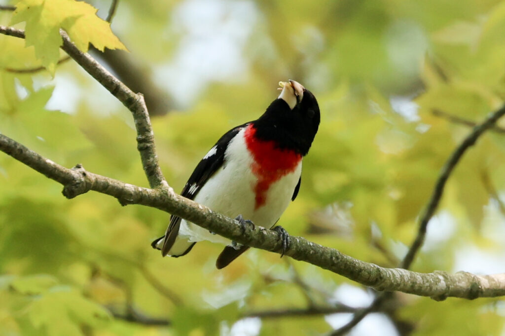 The birds were not very cooperative, except for a House Wren that was nest-building and a Rose-breasted Grosbeak that was courting a female.