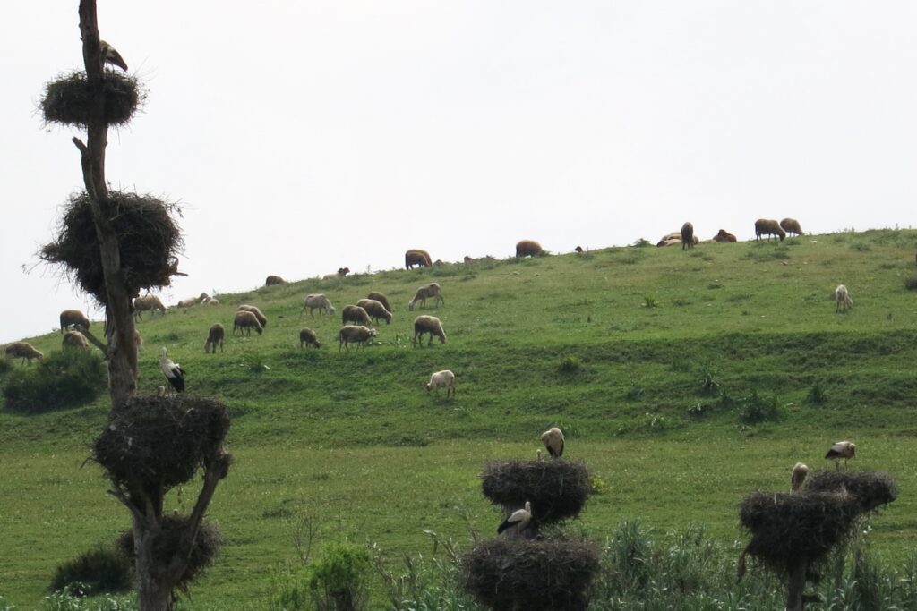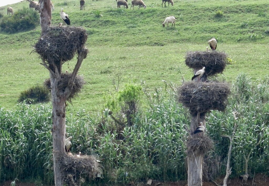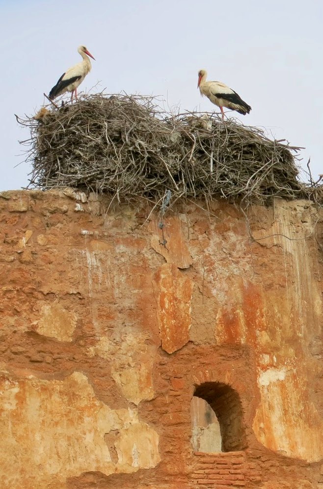 Here we encountered the first of many White Storks nesting in trees and on buildings. The storks winter farther south in Africa and migrate north to Morocco and other northern destinations to breed.