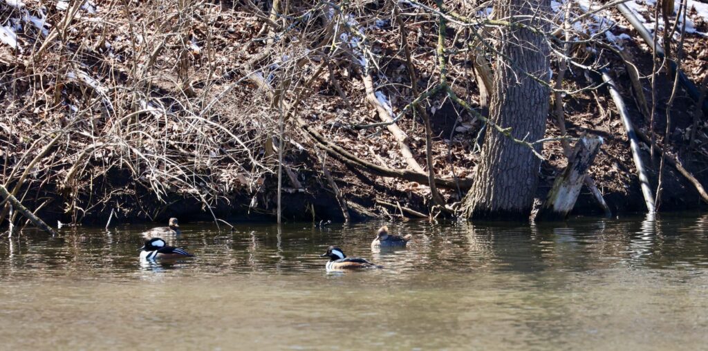 Farther along, we came across two pairs of Hooded Mergansers, also on the far side of the pond, away from any footpaths.