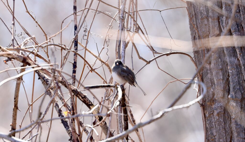 This Slate-colored Dark-eyed Junco was flitting around deep in the undergrowth, but appeared just long enough for a photo.