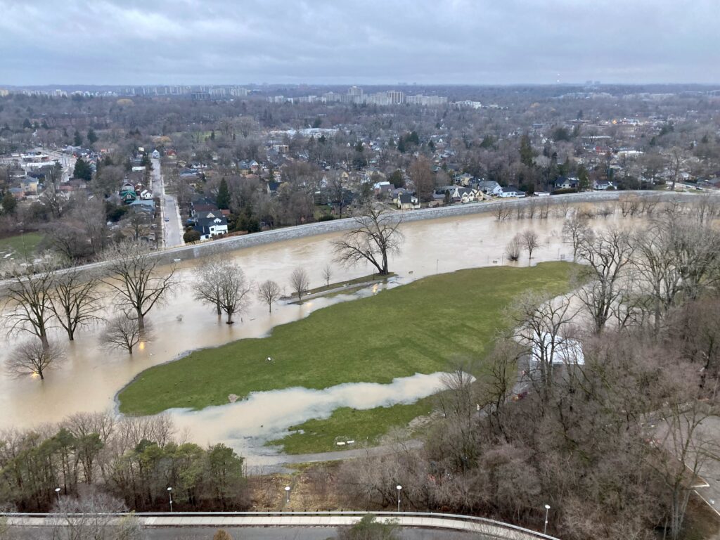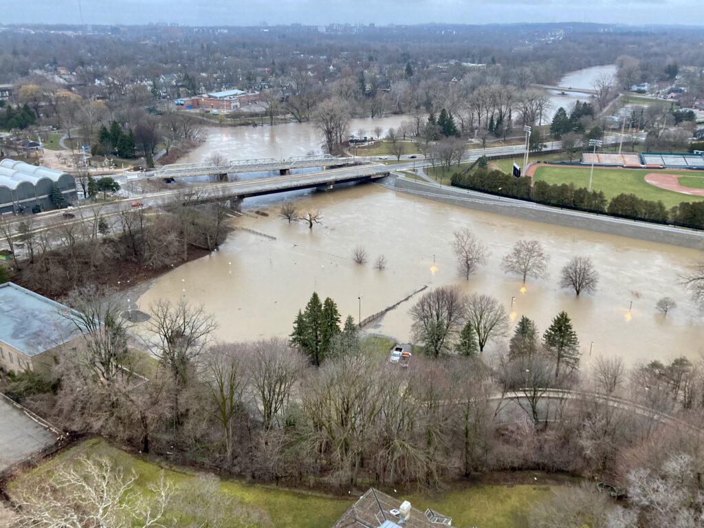 We thought we’d had enough rain, but apparently not. March 31st brought more rain overnight. The river is higher than we’ve seen it since we moved to London. These photos are from April 1st:-=). Fooled us!