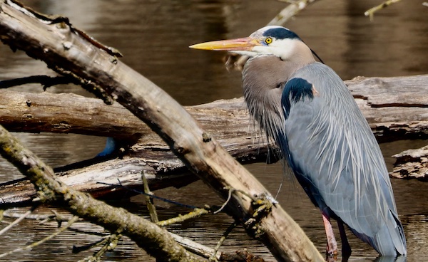 Just when we think we have seen all of the birds we are going to see for the day, we will have an unexpected sighting, just as we are about to get into the car. We call these our “parking lot birds”. On this day, when we got to the parking lot, we noticed another photograph with her lens pointed into the pond. When we asked what she had seen, she pointed out a Great Blue Heron perched nearby. Our parking lot bird for the day!
