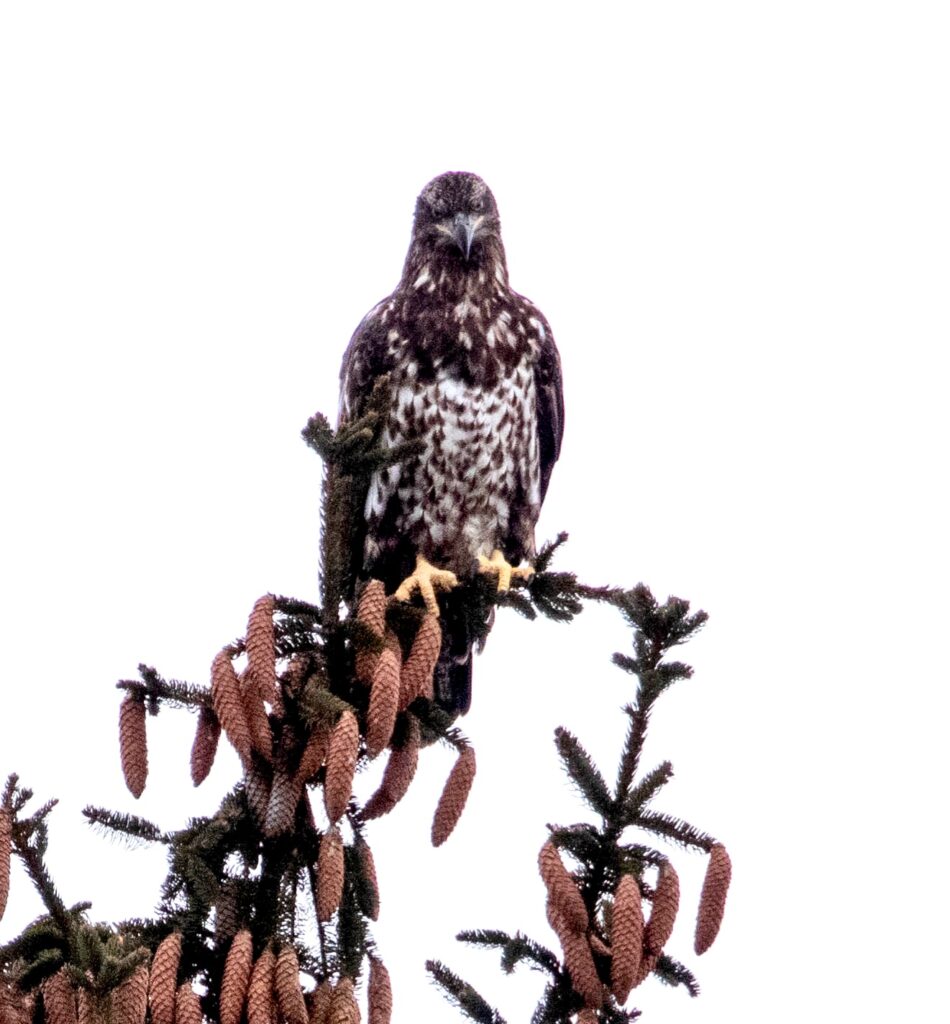 We spotted this Rough-legged Hawk in January, 2022, overlooking open fields in southwestern Ontario.