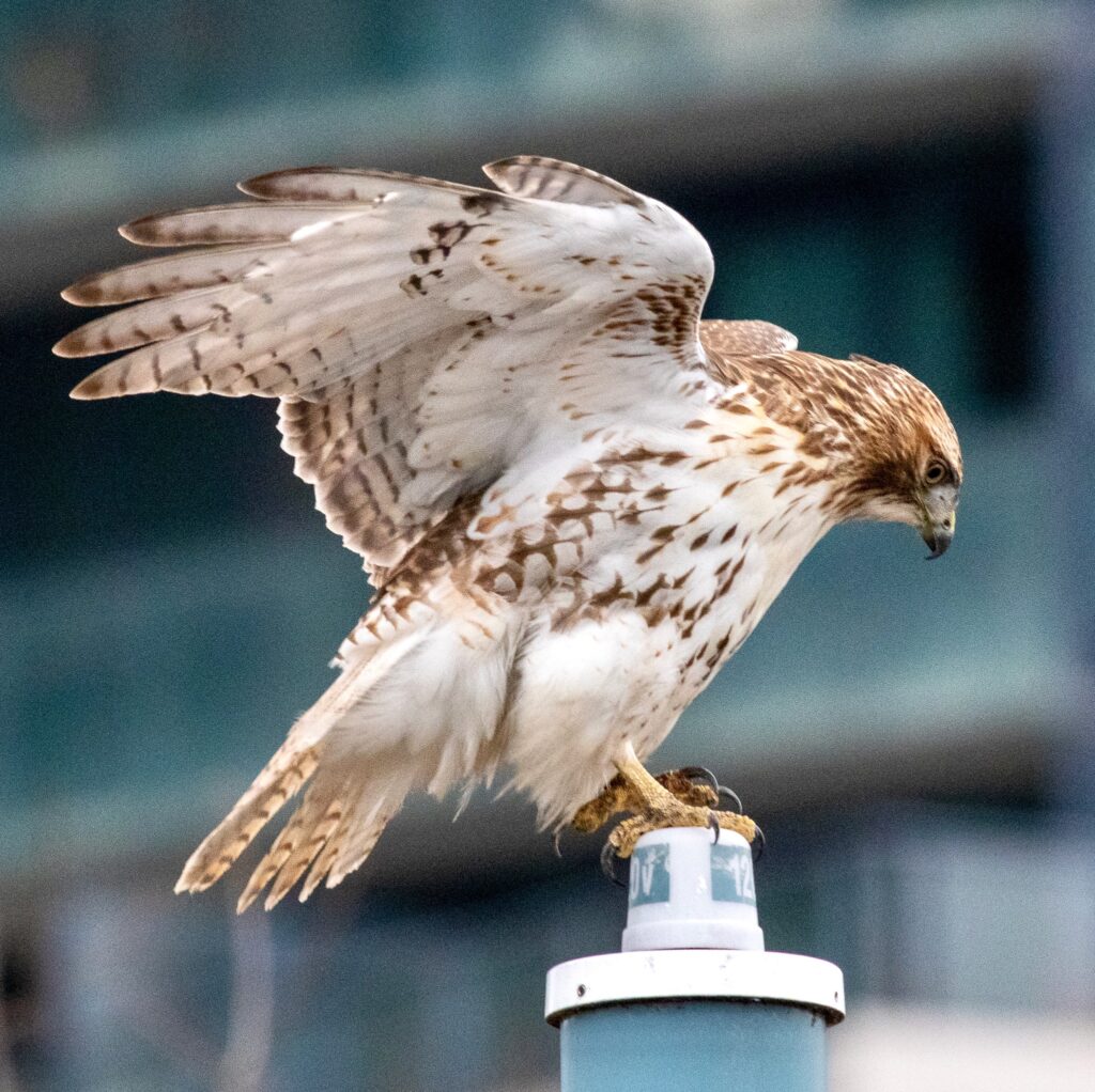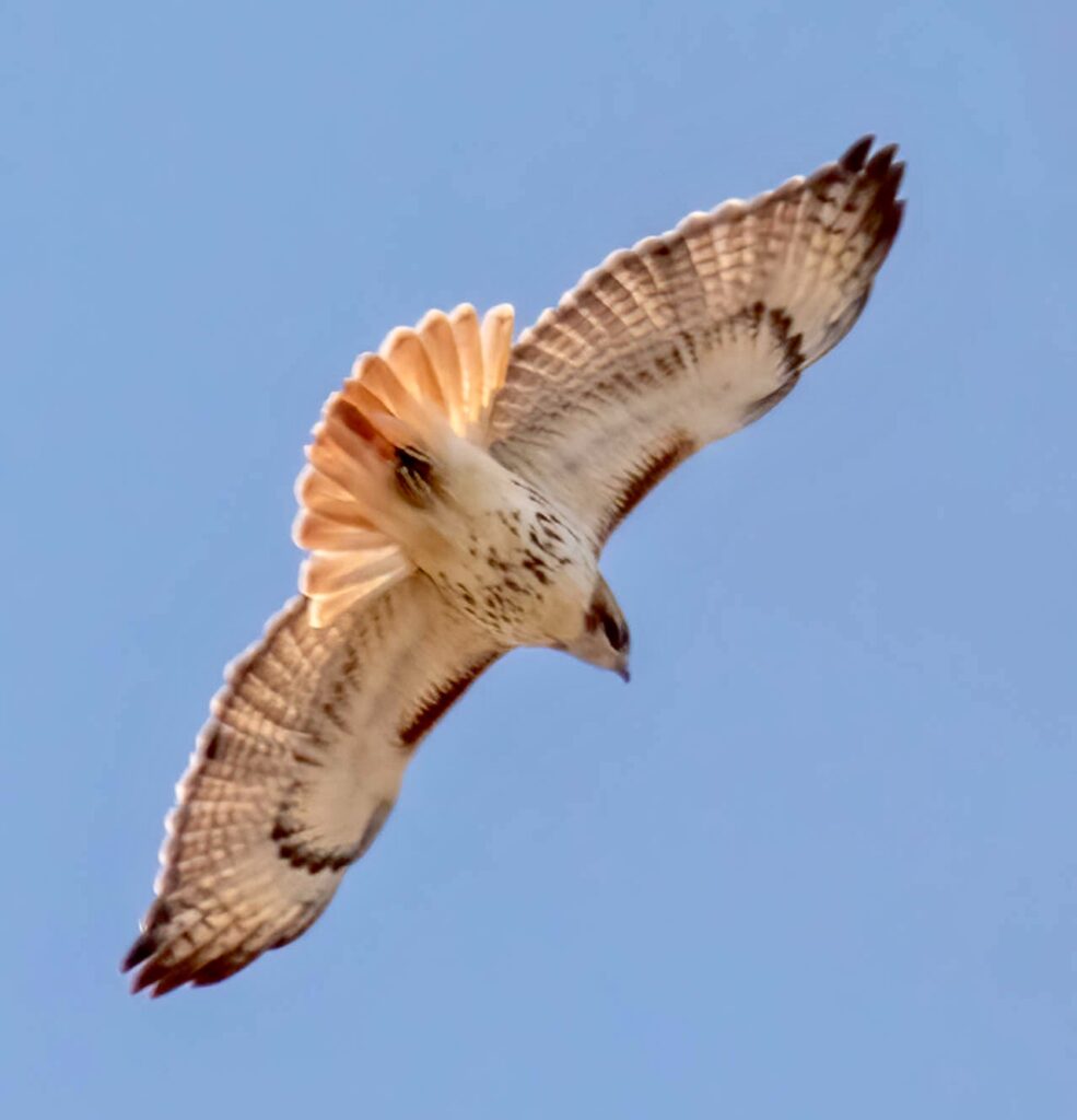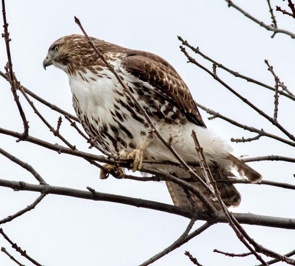 Red-tailed Hawks come in many colour forms. Juveniles have striped tails before developing the breed’s signature russet tail.