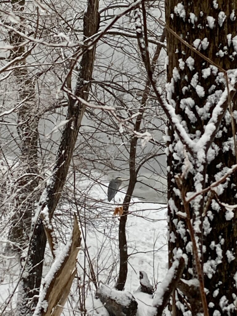 First, along the rivers, as long as there is open water, we sometimes find a hardy Great Blue Heron. Whereas most herons will migrate farther south for the winter, a few elect to stay through the winter.
