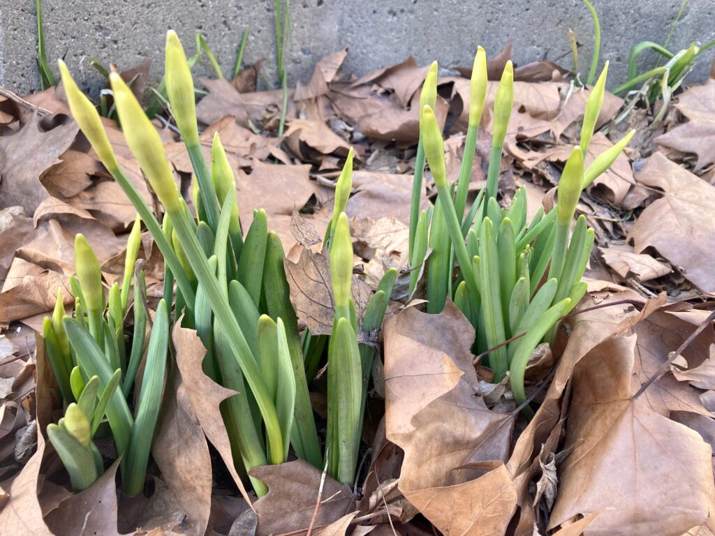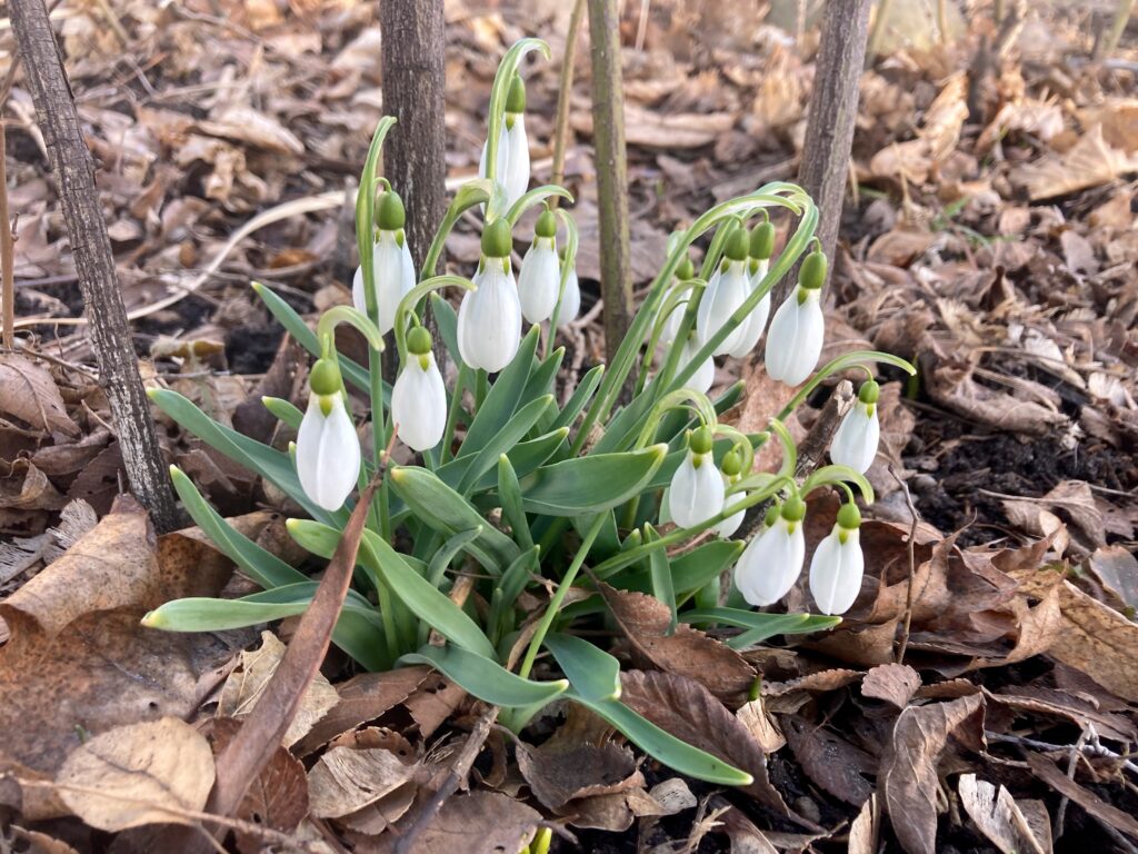After a few very mild days, we now have snow and freezing rain. The mild weather encouraged a few spring blossoms in the gardens at Eldon House. They are now buried under ice and snow.