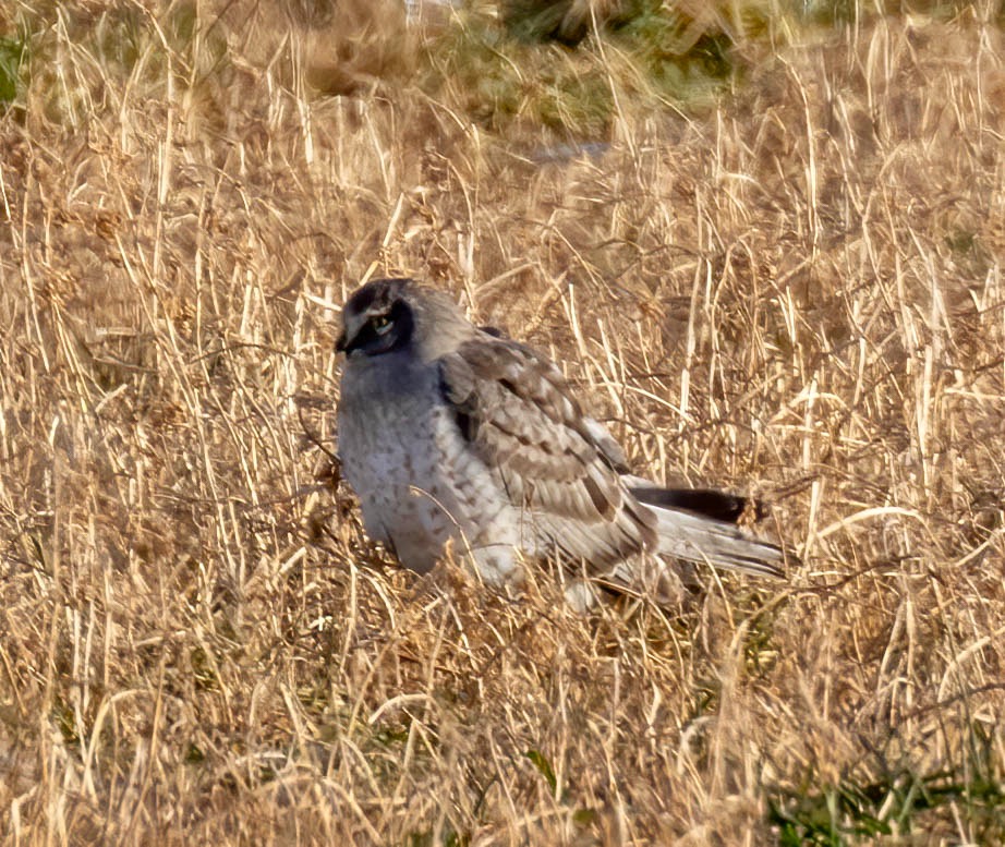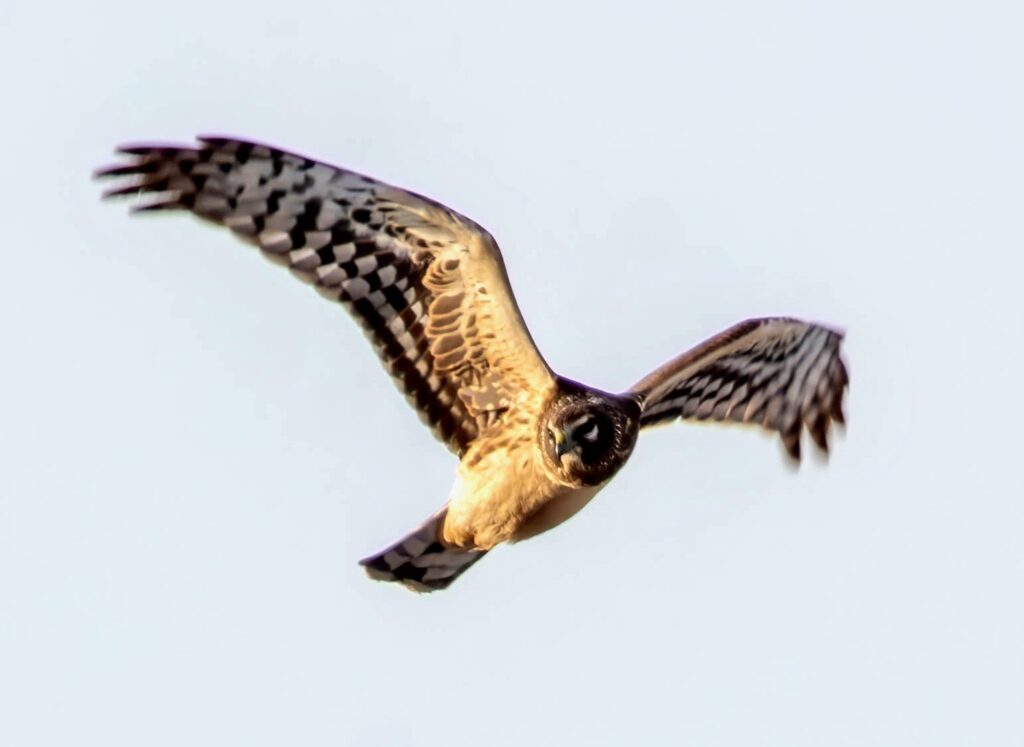 Northern Harriers are often seen flying low over open fields. They have an owl-like face that allows them to detect prey by ear. Also characteristic of Northern Harriers is the white rump patch on both males and females.