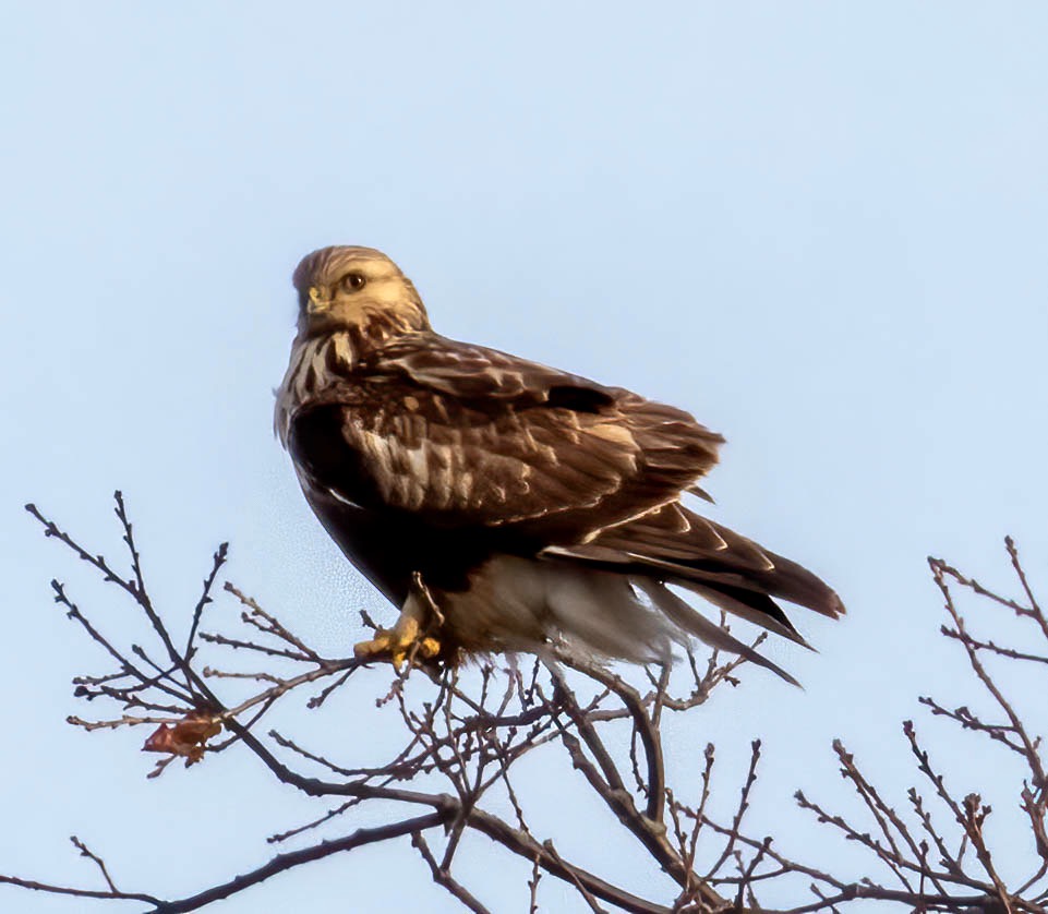 Rough-legged Hawks are one of only 3 North American raptors with legs feathered all the way to its toes.