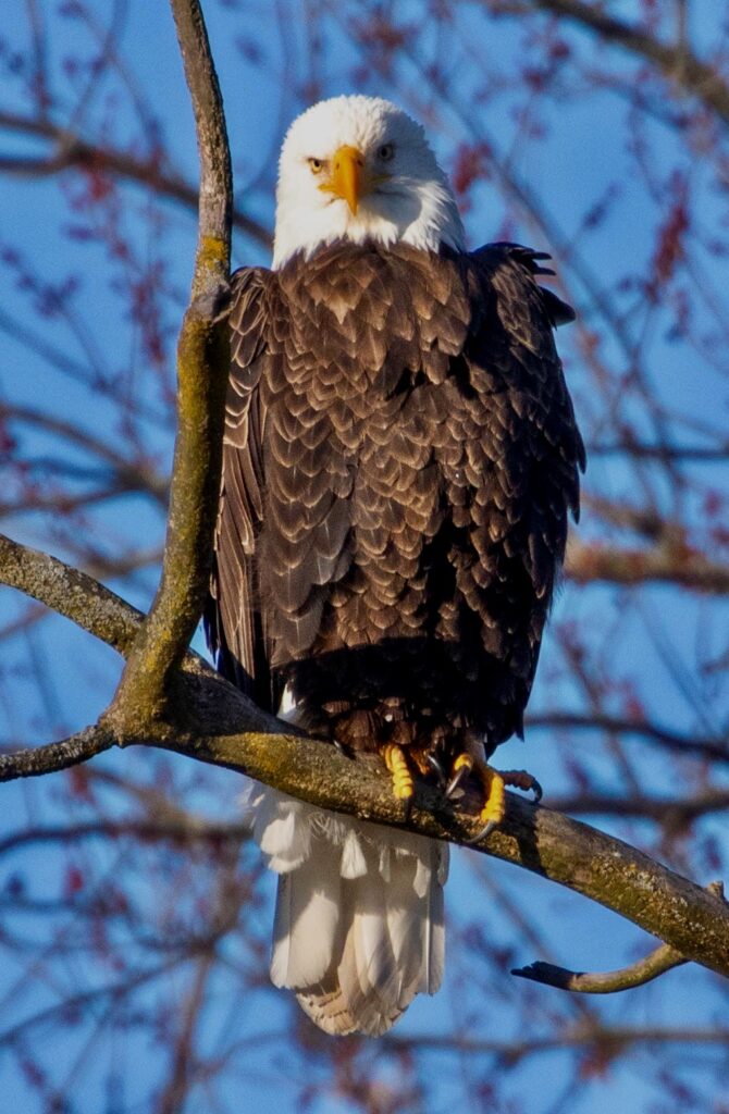 Cornell’s All About Birds website describes Bald Eagles as having, “Complex migration patterns that depend on age, breeding location, and food availability.” Bald Eagles tend to breed across northern Canada and Alaska and migrate farther south and to coastal areas to find open water. Some locations, including southwestern Ontario have year-round populations of Bald Eagles. Eagles can be found along the Thames River system in London Ontario at any time of year. They nest in trees except in regions where only cliff faces or ground sites are available